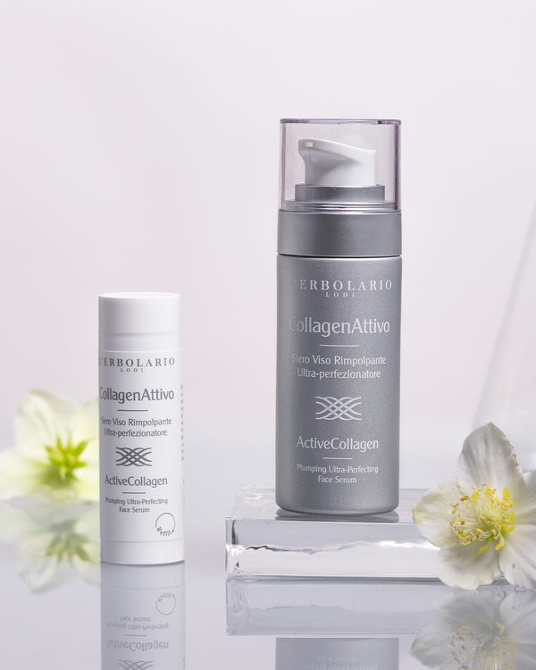 The L’Erbolario Laboratories have created the ActiveCollagen anti-ageing line, a complete routine that plumps, firms and lifts skin that is mature or no longer youthful. To prevent sagging skin, wrinkles and expression lines on a daily basis, it offers the most effective anti-ageing treatments: Day Face Cream, Night Face Cream and Face Serum in convenient, refillable packaging, Eye and Lip Contour Cream, Eyelash Lengthening Serum, and Powder Cleanser for the face.
