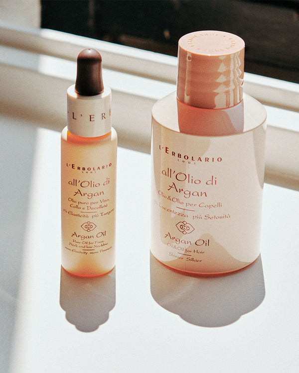 Impressed by the nourishing and anti-ageing properties of Argan oil, a natural beauty ingredient used by Moroccan women for centuries, L’Erbolario has developed a full line of treatments containing this golden oil: products for the face, neck, décolleté and whole body, as well as hair.