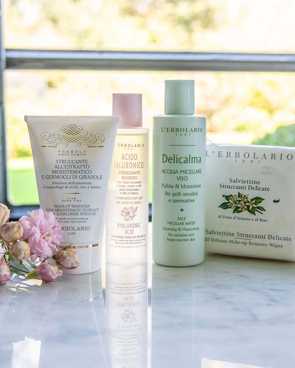 Thanks to the Delicalma line, which has been specially formulated by the L’Erbolario Laboratories and is COSMOS ORGANIC (COSMetics Organic Standard) certified, you can say goodbye to sensitive skin that is prone to redness and discomfort. 24 hour Face Cream, Face Micellar Water and Two-phase Face and Body Oil: three gentle yet effective cosmetic products containing the innovative Delicalma Complex*, an exclusive L’Erbolario formula created with Portulaca extract and organic Ginger, Oat and Helichrysum extracts.