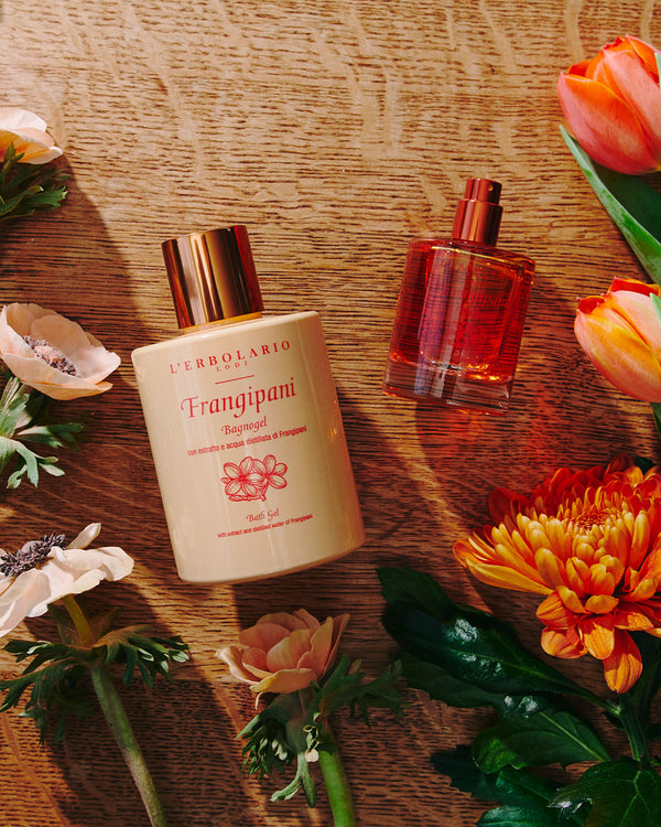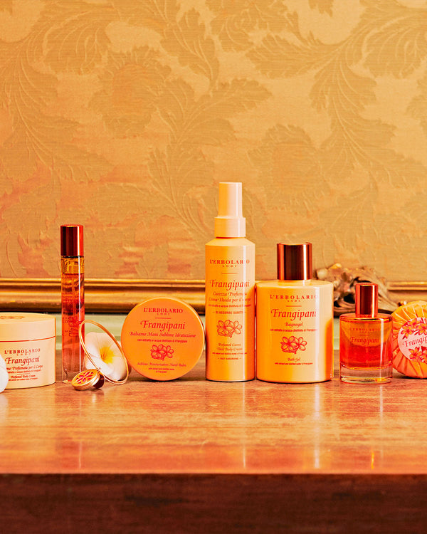A symbol of peace, friendship and simplicity, the Plumeria rubra, also known as Frangipani, is at the heart of this feminine, floral and citrusy fragrance line. Warm and sweet, it is perfect for offering moments of pure joy and beauty. For this line of body care products, the L’Erbolario Laboratory has selected Frangipani from Sicily to produce the extract and distilled water used in the Bath Gel, Body Cream and Perfumed Soap, formulated with up to 98% natural origin ingredients.