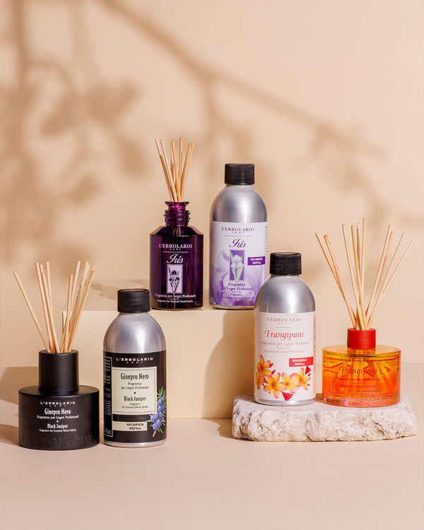 Bring a touch of nature into your home with L’Erbolario’s home fragrances, such as fragrances for scented wood sticks or spray fragrances, to turn any room into an enchanted garden. Fill your home with a pleasant aroma by choosing fragrances with fresh, floral and balsamic notes to evoke the scents of gardens and woodland.