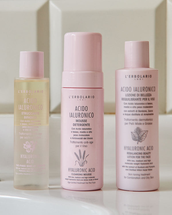 Our multi-active anti-ageing treatments are designed to enhance the beauty of your face and body. They contain low, medium and high molecular weight Hyaluronic Acid, a cosmetic ingredient renowned for its unmatched moisturising and moisture-replenishing properties. L’Erbolario’s best-selling line includes face creams formulated for normal, dry or oily skin types, as well as a serum, cleanser, toner and much more... everything you need for a complete anti-ageing beauty routine for your face and body.
