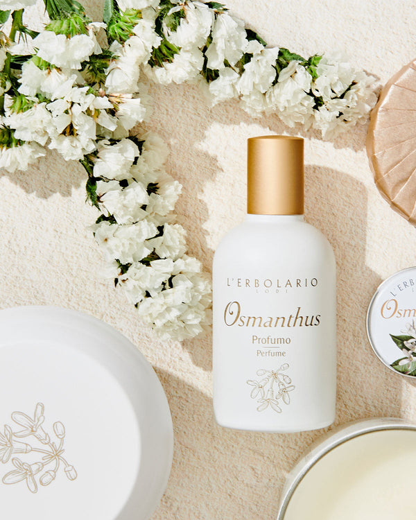 Osmanthus fragrans: a fitting name that encapsulates the appeal of this small yet highly fragrant flower. For this product line, L’Erbolario offers a women’s Perfume with an intense, floral and citrusy scent, as well as gentle body treatments and home fragrances. For your skin, a softening Shower Gel, a gentle Soap, and a rich, moisturising Perfumed Body Cream. Home products are also available, such as the Fragrance for Scented Wood Sticks, Perfumed Candle and Perfumed Sachet for drawers.