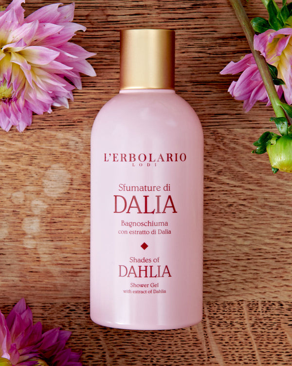 Dahlias are all about adventurous journeys, exploration and exotic places. To enhance the refined cosmetic preparations of the Shades of Dahlia line, the L’Erbolario Laboratories have captured the essence of this charming flower by producing an extract and a perfumed distilled water.