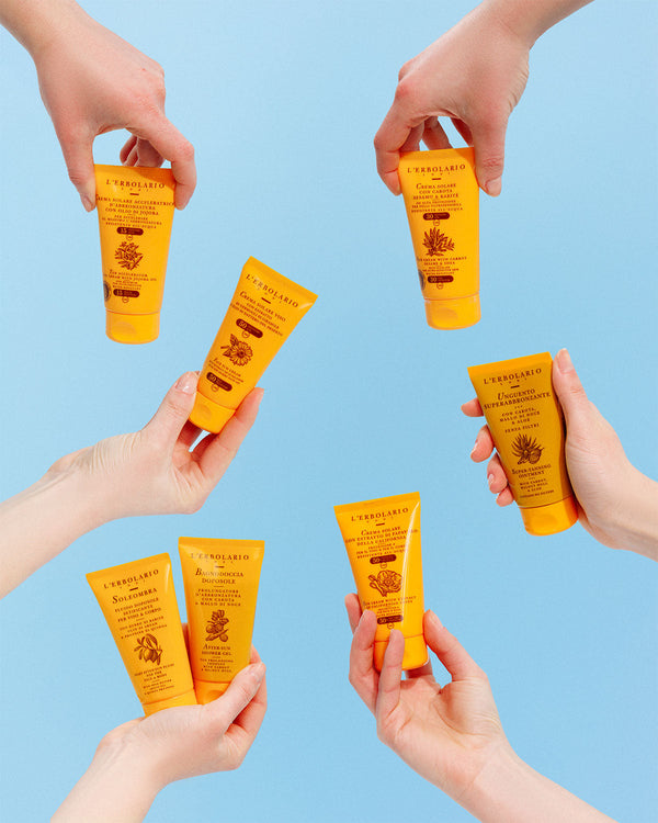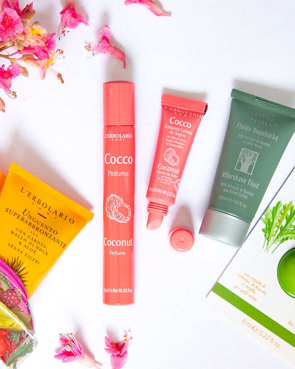 When going on holiday, remember to pack our sun and after-sun creams, which come in 75 ml bottles that are perfect for carrying in your bag or suitcase. Take the Erbokit travel bottle set with you on your travels: a handy kit containing empty bottles and pots that you can fill with your favourite L’Erbolario products.