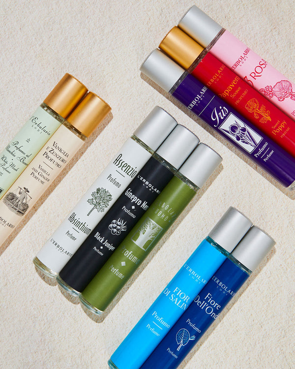 With our practical travel sizes, you can always take the best L’Erbolario products with you wherever you go! Our handbag-sized perfumes come in small, elegant bottles containing 15 ml of your favourite fragrance. Thanks to these mini travel sizes, you can take our best-selling L’Erbolario shower gels, perfumed body creams and shampoos with you wherever you go.