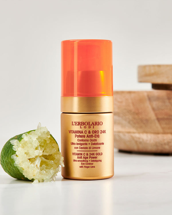 L’Erbolario has developed a line of anti-ageing face products for mature skin containing Vitamin C, which has anti-radical, compacting and illuminating properties, combined with 24K Gold for an effective anti-wrinkle action. Start your anti-ageing beauty routine with the Powder Face Cleanser, then apply the Face Serum, 24-hour Face Cream and Eye Contour. For even more visible results, try the intensive Face Treatment and Face Mask, and finish off with the tinted Face Perfecting Cream to enhance your complexion.